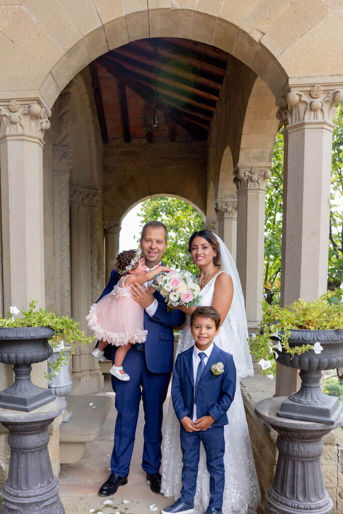 Immersed in nature and the magic atmosphere of late summer, the couple and their children began the day with a symbolic ceremony in the Villa’s ancient chapel, known for once being owned by the famous Medici family. The couple’s first dance was celebrated in the dreamy villa located in the Tuscan hilltops, and was followed by an intimate wedding lunch in a flowered terrace, offering a perfect view of the city and the gorgeous domed Cathedral of Santa Maria del Fiore.